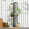 The Rootz 4 Floors Plant Stand is the ideal blend of robust black metal and natural wood, providing a stylish showcase for your plants. With four adjustable shelves, it caters to various plant sizes while enhancing your space with an industrial chic flair. Made from solid fir wood and a sturdy steel framework, this plant stand is built for durability and can complement both indoor and outdoor settings.