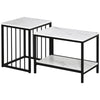 The Rootz marble coffee table set adds a modern touch to your home with two versatile tables. The high table is perfect as a bedside or side table, while the wide, low table is ideal as a coffee table. The black and white design is elegant and easy to clean, enhancing any room. The set's practical features include a smaller table that can be tucked under the larger one, a sturdy steel frame, and a lower shelf for added storage.
