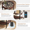 Industrial Aesthetics: Trendy look with a black metal frame, rustic brown shelf, and tempered glass top.