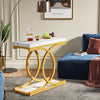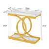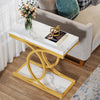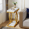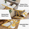Add a touch of glamour to your room with this modern side table, featuring a faux marble top, bottom shelf, and a unique gold frame. Perfect for leisure time.