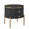 This elegant side table impresses with its marble surface and gold-colored edges, legs, and handles, adding luxury to any room. It features two structured drawers for practical storage and sturdy construction with smooth three-piece drawer slides. The adjustable golden legs allow customizing the height.
