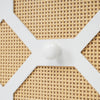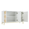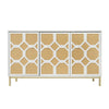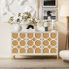 This three-door sideboard combines modern design with practical functionality for any living room. The textured rattan doors provide a natural look, adjustable shelves offer flexible storage, and gold-plated feet add stylish accents.