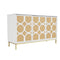 Durable construction: Crafted from wood, woven rattan decor, and chipboard, ensuring longevity.