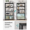 Reinforced steel frame: Provides sturdy support for all your itemsIncreased stability: Crossbars under each shelf level prevent wobbling