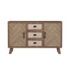 This stylish 120L x 40W x 84H cm sideboard combines timeless elegance with practical functionality. Featuring a herringbone pattern design, three drawers, two doors, solid wood legs, and high-quality materials, this sideboard adds sophistication to any room.