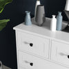 This pretty chest of drawers in pure white with discreet black knobs offers ample storage space with 5 drawers. Perfect for bedrooms, living rooms, or offices.