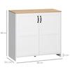 This beautiful white buffet with a wood look top panel creates a cozy atmosphere in your dining room, living room, or kitchen. The double cabinet with adjustable shelves offers ample storage for dishes and more.