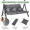 STEEL FRAME: Powder coated for extra strength, it features four legs for even balance. Durable for use all-year round and resistant to rusting. Four chains on each side securely connect the frame to the swing.