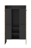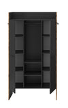 This elegant and durable wardrobe, crafted from Black, offers a modern touch and exceptional functionality for your home. Providing ample storage space with its clothes rail and two doors, this piece keeps your space organized. The integrated seat with a load capacity of up to 90 kg enables comfortable dressing and undressing. Ideal for hallways or alcoves, it fits even the most compact spaces seamlessly.