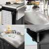 - It has a stainless steel worktop with widened board, 2 drawers, 2 cupboards with internal adjustable shelf, 1 towel rack and 4 wheels.