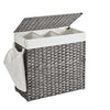 Introducing the Rootz Laundry Basket with Lid, a perfect solution for organizing your laundry! This stylish 140-liter basket features three compartments, a robust metal frame, and convenient rollers for effortless mobility. The hand-woven surface adds elegance, and its foldable design ensures space-saving storage. Keep your home tidy and your dirty laundry out of sight!