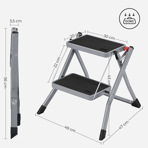 Rootz 2 Step Stepladder - Folding Step Stool - Stable Construction - Steel - 50cm x 59.5cm x 44cm
