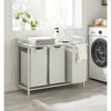 The Rootz Laundry Basket with Shelf Organizer is the perfect solution for keeping your laundry room tidy and organized. This versatile unit features a durable MDF and steel construction with classic white finish, complemented by sturdy Oxford cloth bags. The large overall size and individual bag measurements provide ample space for sorting laundry, while the shelf offers additional storage or workspace. With a high total static load capacity and included anti-tippers for stability, this organizer is a must-have for every household.