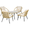 The Rootz 5-Piece Boho Style Garden Seating Set: 1 Dining Table & 4 Chairs, Cushions, Poly Rattan, Beige/Natural