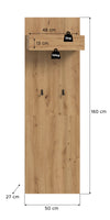 Enhance your hallway with The Rootz Artisan Brown Imitation Wardrobe Panel. Measuring 160x50x6 cm, this functional piece offers two black metal hooks, a hat rack, and a coat rail. Ideal for organizing, it features an easy-care surface and is made from FSC®-certified wood for sustainability. Easy to assemble and expandable, it seamlessly integrates with other series items to customize your space.