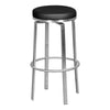 A sleek and modern design of our bar stool, features a round, padded seat with a stylish metal framing, 4 crossed stainless steel feet, and a built-in footrest for added comfort, making it the perfect addition to any contemporary space.