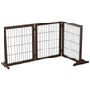 Rootz freestanding pet gate can safely and effectively limit the range of your pet's activities. The three solid wood frame gates connected by hinges can be rotated into various angles. They are suitable for being placed in narrow aisles, staircases, or wide areas. When not in use, it can be easily folded up and occupy a small space. This is a great product to help you take better care of your pets when you are out and resting, and let them play happily in a safe area.