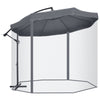 Do you need a modern and functional parasol for your garden? Our Rootz parasol offers you exactly the shade you need! The wind hood ensures good ventilation and stable wind resistance. The integrated mosquito net keeps annoying insects away. This garden umbrella offers a large shade area and is suitable for a garden set for up to 8 people. Enjoy cool shade on hot summer days!UV-Resistant Polyester: The umbrella roof is made of UV-resistant polyester, ensuring long-term use and protection from harmful sun rays.360 Degree Rotating Canopy: The 360-degree rotating canopy provides complete sun protection, allowing you to adjust the shade as the sun moves.Easy Operation: The side crank allows for easy and quick opening and closing of the parasol, making it convenient to use.Wind Hood and Mosquito Net: The wind hood ensures good ventilation and stability in windy conditions, while the integrated mosquito net keeps unwanted insects away.- Color: Dark gray (fabric) + black (frame)