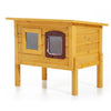 This cute and high-quality cat house made of glazed fir wood provides a safe and comfortable resting place for your cat. Featuring a water-repellent coating and a roof covered with bitumen sheets, this cat house is suitable for both indoor and outdoor use.