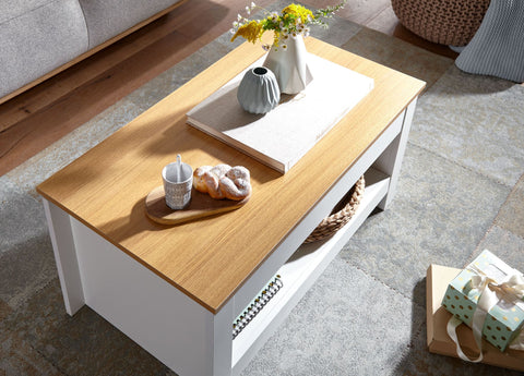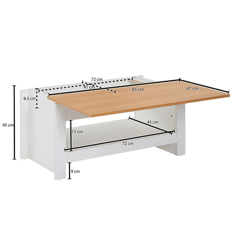 Rootz Coffee Table - Living Room Table with Storage Space - Modern Square Coffee Table - White Oak Design - 85x47x45 cm