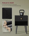 Enhance your bedroom decor with The Rootz bedside table in elegant ebony black finish. Featuring a practical drawer and open shelf for convenient storage. The perfect addition to any modern bedroom setting.