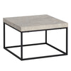 A modern coffee table featuring a matte stone-look table top for storage and a robust metal frame for support.