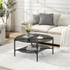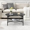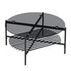 Enhance your living space with The Rootz modern coffee table featuring a round, dark transparent glass top and a stable metal frame in black matte. Designed for versatility, its minimalist style complements industrial, loft, or Scandi interiors. The inclusion of practical storage beneath the tabletop makes it perfect for magazines or remotes, while plastic caps protect your floor from scratches.