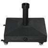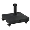 Keep your umbrella firmly in place with this garden umbrella base from Rootz. It is made of durable, robust plastic and needs to be filled with water or sand to increase the weight and ensure sufficient stability outdoors. 4 smooth-running wheels give it high mobility if necessary. Whether you want to use it in the garden, patio or pool, this is the umbrella base for you.Durable Construction: Made from high-quality HDPE plastic, this parasol stand is built to withstand the elements, ensuring long-lasting use in any outdoor setting.High Mobility: Equipped with four smooth-running wheels, including two with brakes, this stand offers easy movement and secure positioning wherever you need it.Easy to Fill and Clean: The filling opening allows for quick and hassle-free filling with water or sand, making it simple to achieve the desired weight and stability.Versatile Use: Suitable for various outdoor areas such as gardens, patios, and poolside spaces, this stand accommodates umbrella poles with diameters ranging from 22 mm to 38 mm.- Color: Black