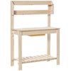Pot plants to your heart's content with this bench from Rootz. The fir wood construction means it's tough and durable, as well as suitable for both indoors and outdoor use. It features two small shelves and a bottom shelf for handy holding room. The table top slides open and closes easily for extending working space, with a handy dry sink located underneath - great for mixing soils together or using as a bin. Finished with handy hooks on the side.