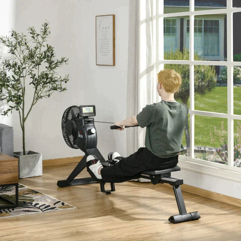 Rootz Rowing Machine With 16 Resistance Levels - Foldable - Rollable - Black Steel - 225 x 55 x 88 cm