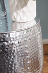 An exceptional oriental design with stunning hammered structures and a unique row arrangement that adds a touch of elegance to any space, while offering convenient storage space for decorations, flowers, and more. Handcrafted with meticulous attention to detail, this table features a folded lower edge for safety, high stability through high-quality aluminum construction, and individual dents that make each piece a one-of-a-kind masterpiece.