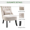 This elegant dining chair from Rootz is a stylish addition to any living space, perfect for reading and resting. The tufted backrest and curved legs enhance its vintage charm while providing comfortable lumbar support. The durable fabric cover is easy to care for, and solid wooden legs ensure stability.