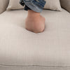 - Material: Linen look fabric (100% polyester), foam, rubber wood