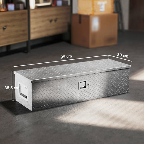 Rootz Sturdy Aluminum Storage Box - Tool Box - Lockable Storage - Weatherproof - 99cm x 33cm x 25.5cm