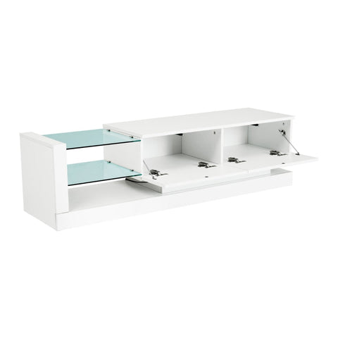 Rootz Stylish High Gloss TV Cabinet - Entertainment Unit - Media Console - LED Lighting - 140L x 38W x 38H cm