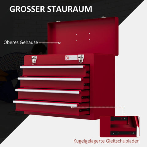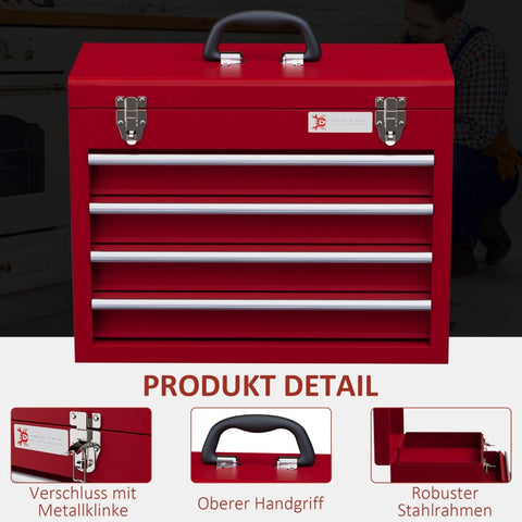 Rootz Tool Case - Tool Cabinet - Storage Chest - Robust Steel - 18kg Capacity - 51cm x 22cm x 39.5cm