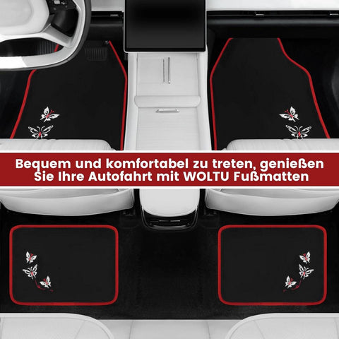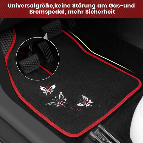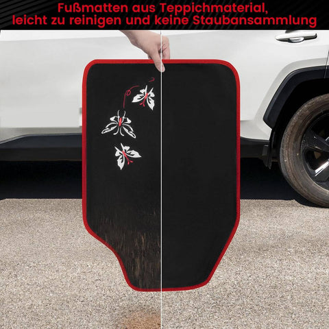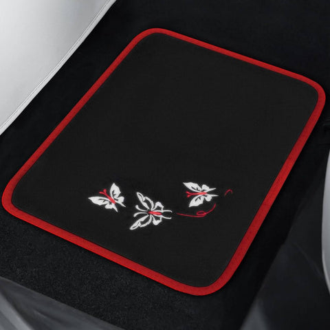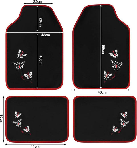 Rootz Universal Car Floor Mats Set - Non-Slip Automobile Rug - Butterfly Embroidery Pattern - Water-Repellent - 43cm x 66cm & 41cm x 30cm