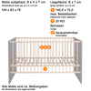 - Dimensions: Wardrobe: 130x190x60 cm, Cot: 144x83x78 cm, Changing Table: 96x105x78 cm