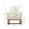 This soft mid-century modern style rocking chair is the perfect addition to your living room or bedroom, offering stability and durability with a robust solid wood construction. The padded high backrest and extra-long armrests provide optimal comfort and relaxation. The white teddy polyester cover and modern design add a stylish and cozy touch to any room.