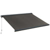Discover the advantages of our high-quality cassette awning from Rootz! Thanks to the reinforced frame and coated fabric, the awning offers excellent protection from the sun and the elements. Extend the electric awning at the push of a button and enjoy a pleasant spot in the shade on your terrace, safely protected from heat and UV rays. In addition to the remote control, the awning can also be easily extended and retracted manually.Effortless Operation: With the included remote control, you can extend or retract the awning at the push of a button, making it incredibly convenient to use.Durable Construction: The aluminum frame is lightweight yet durable, ensuring long-lasting performance and resistance to the elements.Superior Sun Protection: The breathable 280g/㎡ polyester fabric provides excellent UV protection and keeps your outdoor space cool and comfortable.Complete Assembly Kit: The package includes all necessary mounting hardware, making installation straightforward and hassle-free.- Color: Dark Gray