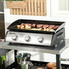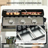With the Rootz gas grill from Outsuny, culinary freedom is paramount! Featuring an innovative three-burner design and three separate cooking areas, you can prepare a variety of dishes simultaneously. Each burner offers an output of 10,000 BTU/7.5 kW, ensuring ample heat and perfect grilling results. The non-stick cooking plate simplifies cooking and cleaning, while the practical fat drip tray collects excess oils.