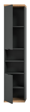 This stunning wall cabinet, boasting an grey finish, enhances your bathroom decor with a modern touch. Perfect for organizing cosmetics and bathroom essentials with ample storage space, it features a compact design that saves floor space. Its easy-to-clean surface and sturdy chipboard construction ensure long-lasting durability.