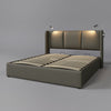 The Rootz double bed with storage space and USB reading light offers comfort and functionality in one product. Made of solid wood with PU or linen cover and metal frame, it comes in gray or beige.