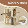 The Rootz scratching post stands 175 cm tall, crafted from durable wooden chipboard and sisal for climbing and scratching. It features two cozy caves for your felines, ensuring endless fun while keeping your furniture safe. Designed for indoor use, it accommodates cats of all sizes.