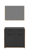 This wardrobe combination features a stylish design in elegant black, perfect for any modern entryway. Measuring 95 x 189 x 37 cm, the combination includes a practical chest of drawers and a functional mirror. With easy-care surfaces, cleaning is a breeze, ensuring your space remains inviting and tidy.