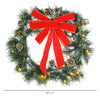 - Artificial door wreath with a diameter of 60 cm, with 8 pine cones and a large red bow knot for decoration
