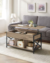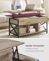 The Rootz coffee table combines functionality and aesthetics with its sleek design and sturdy construction. Made from high-quality wood chipboard and steel, this camel brown and black table adjusts in height, making it perfect for both casual and formal settings. Its generous surface area provides ample space for drinks, decor, and more, while the bottom compartment keeps your space organized.