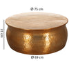 Eine atemberaubende Goldfarbe mit einem faszinierenden orientalischen Design mit gehämmerten Strukturen bietet ausreichend Stauraum für Ihre wichtigsten Utensilien, während die handgefertigte Aluminiumkonstruktion für außergewöhnliche Stabilität sorgt und Ihrem Wohnraum einen Hauch von Individualität verleiht.