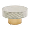 Der exquisite runde Couchtisch mit Blumenmuster verfügt über ein bezauberndes florales Oberflächenmuster auf der grauweißen Tischplatte, einen atemberaubenden goldfarbenen Metallrahmen und viel Stauraum, was ihn zu einem auffälligen und funktionalen Mittelpunkt für jeden Raum macht, während das liebevoll handgefertigte Design dafür sorgt seine Einzigartigkeit und Qualität.