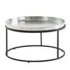 Ein dekorativer Couchtisch mit modernem Design. Seine ausdrucksstarke Hammerschlagstruktur sorgt für visuelle Faszination. Praktische Griffmulden sorgen für eine einfache Handhabung. Die harmonische Farbkombination aus Silber und Schwarz passt zu jeder Einrichtung. Jeder Tisch ist ein in liebevoller Handarbeit gefertigtes Einzelstück, mit leichten Farb- und Maßabweichungen. Die abnehmbare Tischplatte bietet Komfort, während Anti-Rutsch-Noppen Ihre Böden schützen. Werten Sie Ihren Raum mit moderner Eleganz auf.